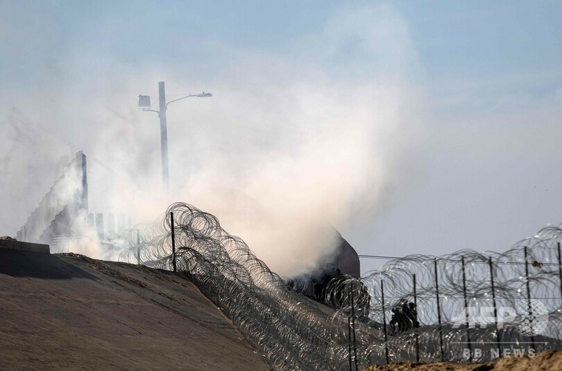 米国境に接するメキシコ北部の町ティフアナ(Tijuana)で25日、主にホンジュラスから米国を目指して移動してきた移民集団約5000人のうち成人男女と子どもから成る約500人が、米カリフォルニア州サンディエゴ(San Diego)に入ろうと強行突破を試み、さびの浮いた金属製フェンスをよじ登り、コンクリートで固められた川床に大挙して侵入した。