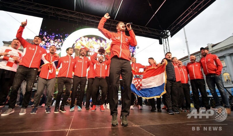 【11月27日 AFP】男子テニス、国別対抗戦デビスカップ(Davis Cup 2018)を制したクロアチア代表チームが26日、母国に凱旋(がいせん)し、首都ザグレブのメイン広場に集まった数千人のファンから歓迎を受けた。