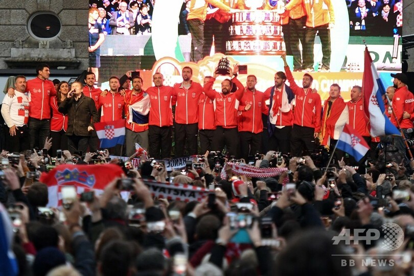 【11月27日 AFP】男子テニス、国別対抗戦デビスカップ(Davis Cup 2018)を制したクロアチア代表チームが26日、母国に凱旋(がいせん)し、首都ザグレブのメイン広場に集まった数千人のファンから歓迎を受けた。