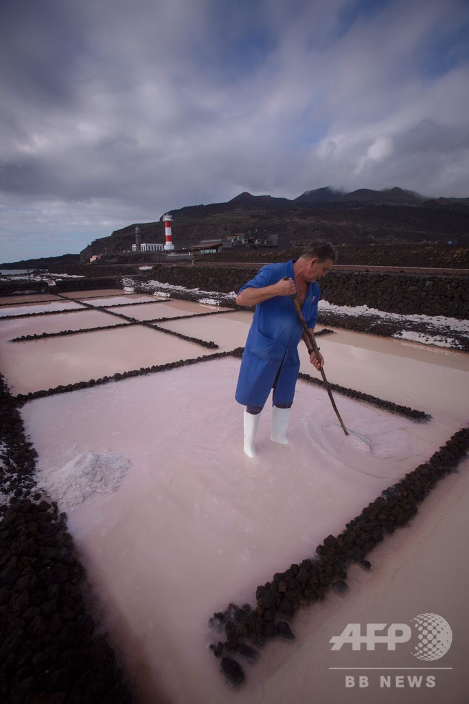 【11月29日 AFP】スペイン・カナリア諸島(Canary Islands)ラパルマ(La Palma)島南部テネギア(Teneguia)火山周辺に、広さ3万5000平方メートルにおよぶフエンカリエンテ(Fuencaliente)塩田が広がっている。海水を使って高品質の塩を作っており、26日には塩田で作業をする人の姿が見られた。 (c)AFP