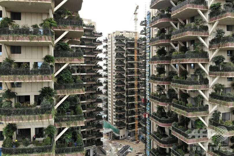 この第4世代住宅のポイントは、緑化面積だ。各マンションには、高層ビルでありながら植物を植える場所が整っており、その外観はまるで垂直に立った森のようで、都市景観の緑化や生態環境改善につながることが期待されている。(c)東方新報/AFPBB News