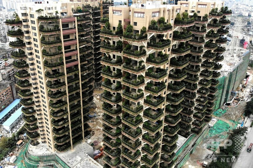 この第4世代住宅のポイントは、緑化面積だ。各マンションには、高層ビルでありながら植物を植える場所が整っており、その外観はまるで垂直に立った森のようで、都市景観の緑化や生態環境改善につながることが期待されている。(c)東方新報/AFPBB News