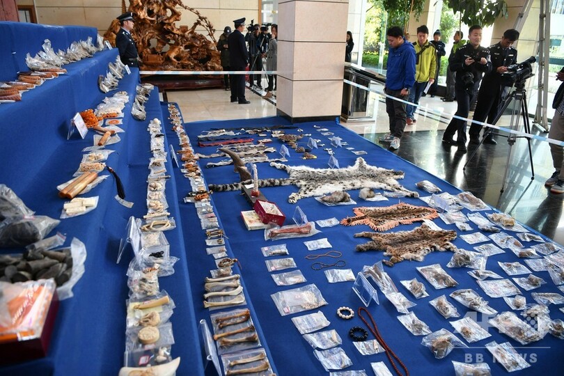 ユキヒョウの毛皮、サイの角など希少種関連製品の押収品702点公開 昆明