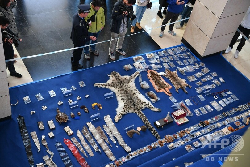 ユキヒョウの毛皮、サイの角など希少種関連製品の押収品702点公開 昆明