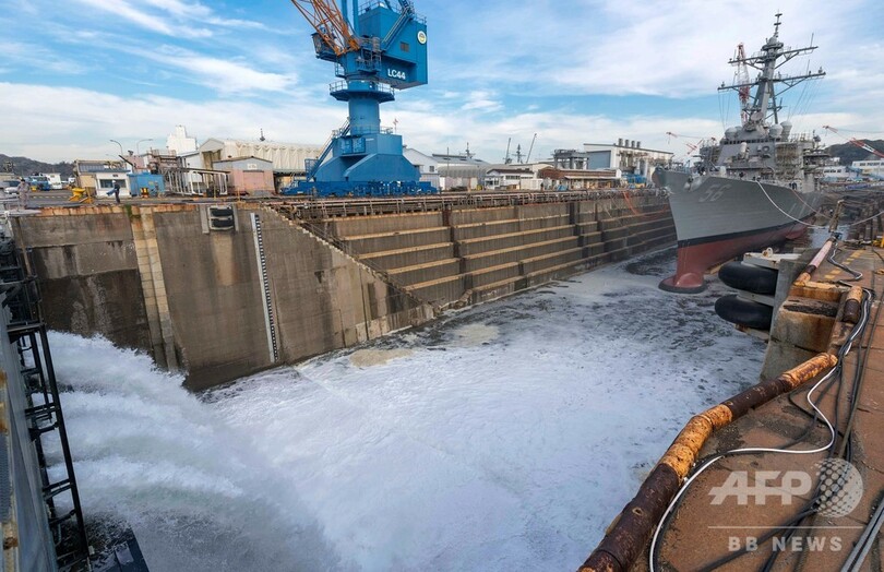 【11月28日 AFP】シンガポール沖で昨年8月にタンカーと衝突・損傷し、神奈川県横須賀市にある米軍横須賀基地で修理を受けているミサイル駆逐艦「ジョン・S・マケイン(USS John S. McCain)」が27日、ドックから出て海に浮かんだ。