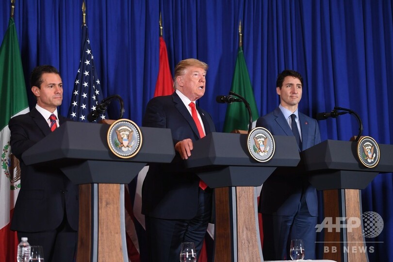 【12月1日 AFP】米国とメキシコ、カナダの3か国首脳は30日、北米自由貿易協定(NAFTA)に代わる新貿易協定「米・メキシコ・カナダ協定(USMCA)」に署名した。ドナルド・トランプ(Donald Trump)米大統領は、NAFTAが米国の雇用を喪失させていると批判していた。
