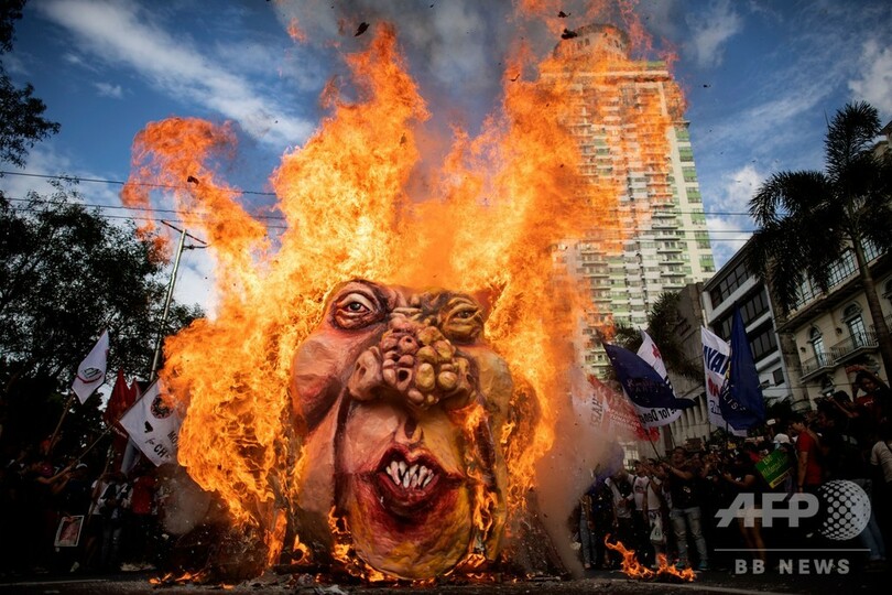 「フィリピン革命の父」生誕155年、活動家らドゥテルテ大統領の人形に火