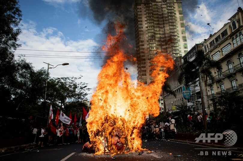 「フィリピン革命の父」生誕155年、活動家らドゥテルテ大統領の人形に火