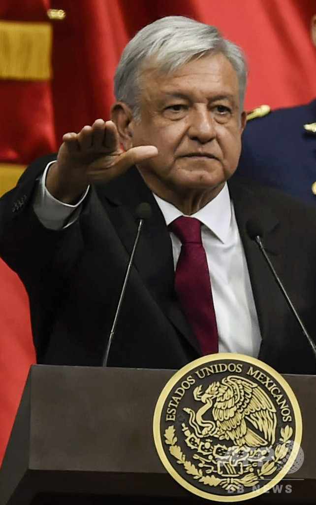 首都メキシコ市の同国議会で行われた宣誓式で、ロペスオブラドール氏は右手を挙げて「メキシコの憲法と法律を擁護し、忠実かつ愛国的に、国民が私に委ねた共和国大統領職の責務を果たすことを誓う」と述べた。
