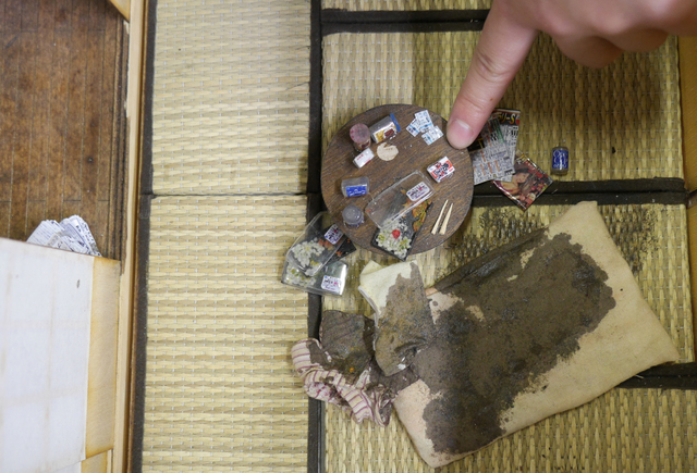 これまでに制作した6作品にはそれぞれテーマがあり、亡くなった部屋のあるじの状況も世代もさまざまだ。ミニチュアが再現しているのは、「ゴミ屋敷」、自殺した大学生の部屋、孤独死の部屋、孤独死ではないが遺品整理に訪れた現場などだ。「ゴミ屋敷」と化したワンルームに住んでいた女性は、ロフトから排せつ物を垂れ流していた。窓にハエが群がっていることに気づいた隣家が通報したころには、死後2か月ほどが経過していた。別の孤独死した男性が暮らしていた6畳の和室は、ちゃぶ台と薄型テレビのほかは目立った家財道具もなく、こざっぱりと片付いていた。布団の上で亡くなっているのを発見されたという。ロフトのはしごにロープを引っ掛け首つり自殺した大学生は、床に事前に用意したブルーシートを敷くという周到さだった。