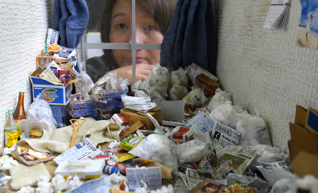 【12月12日 AFPBB News】ワンルームの室内に堆積する大量のゴミ。体液で汚れたせんべい布団。入浴中に死亡し、その後も保温され続けた浴槽。壁に粘着テープで描かれた「ゴメン」の文字。ミニチュアの中に、「人」はいない。