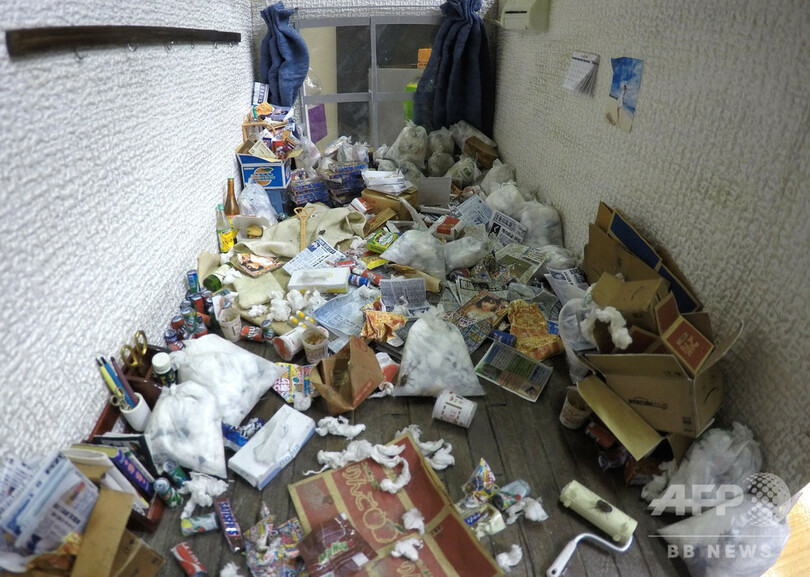 【12月12日 AFPBB News】ワンルームの室内に堆積する大量のゴミ。体液で汚れたせんべい布団。入浴中に死亡し、その後も保温され続けた浴槽。壁に粘着テープで描かれた「ゴメン」の文字。ミニチュアの中に、「人」はいない。