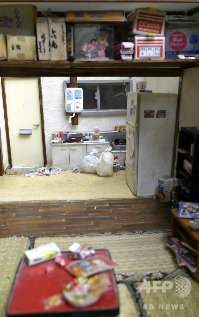 【12月12日 AFPBB News】ワンルームの室内に堆積する大量のゴミ。体液で汚れたせんべい布団。入浴中に死亡し、その後も保温され続けた浴槽。壁に粘着テープで描かれた「ゴメン」の文字。ミニチュアの中に、「人」はいない。
