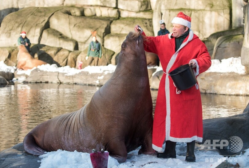 ニュース ライフ こぼれ話 セイウチからサンタにキス 独動物園 2018年12月8日 10:30 発信地:ハンブルク/ドイツ [ ドイツ ヨーロッパ ] このニュースをシェア ‹ › ❮ 2/5 ❯ ドイツ北部ハンブルクの動物園で、セイウチに餌をやる飼育員(2018年12月5日撮影)。(c)Daniel Bockwoldt / dpa / AFP 画像作成中 ! 【12月8日 AFP】ドイツ北部ハンブルク(Hamburg)のハーゲンベック(Hagenbecks)動物園で5日、サンタクロースの衣装をまとった飼育員がセイウチに餌を与えるパフォーマンスが行われた。(c)AFP ライフ 一覧へ> メディア・報道関係・法人の方向け 写真・動画 購入のお問合せ>