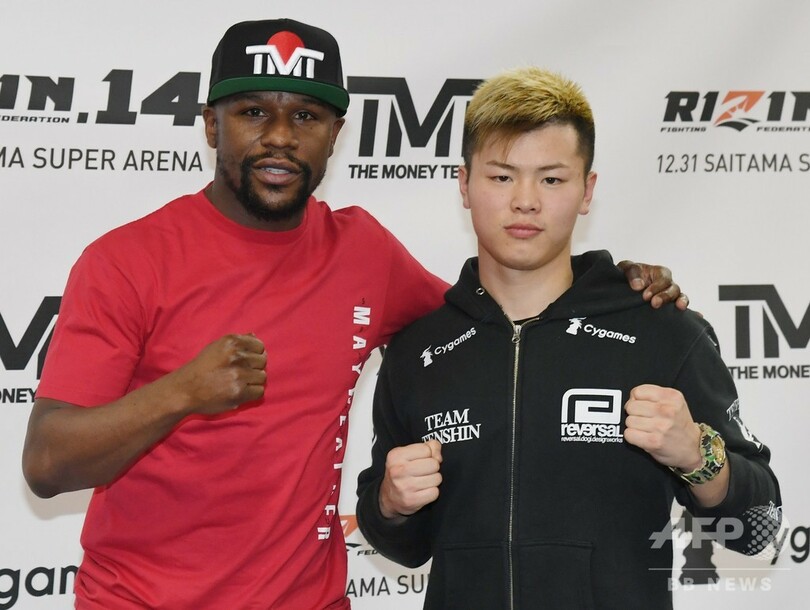 一方、フェザー級キックボクサーとして27戦無敗(21KO)を誇る20歳の那須川もラスベガスでの会見で、日本国民が今回のイベントで自分を応援してくれることを期待していると明かし、「まず日本人でメイウェザー選手と戦ったことのある選手がいないので、そういう中で日本のアスリート代表として立ち向かいたい」「格闘技界をはじめ、日本全国や世界中をこのファイトにひきつけたい」とコメントした。(c)AFP