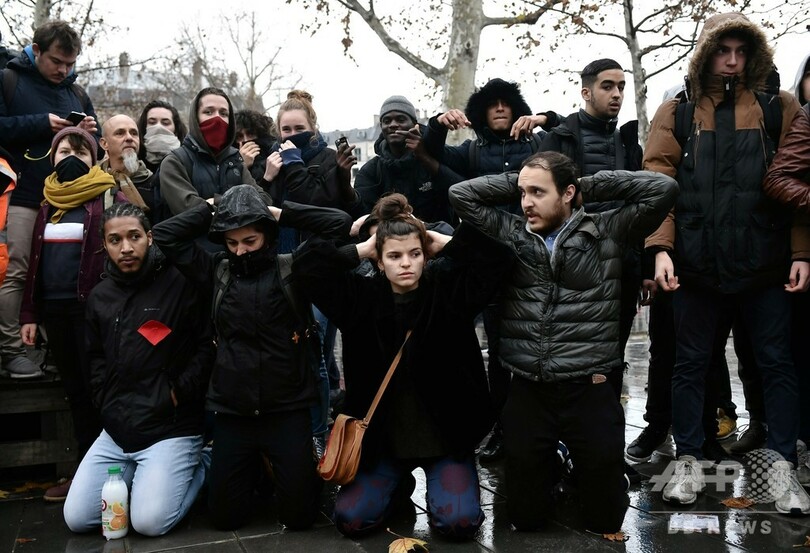 地面にひざまずく生徒ら… 仏高校デモ一斉検挙映像に非難殺到