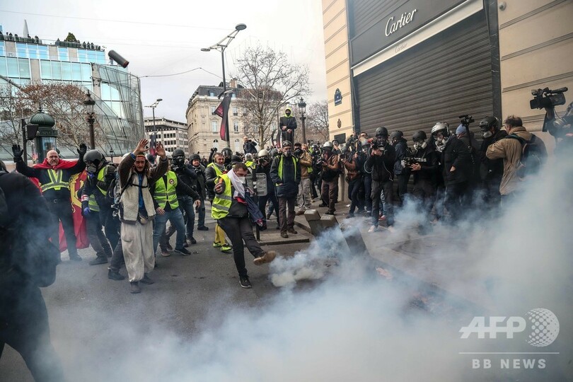 【12月8日 AFP】(写真追加、更新)エマニュエル・マクロン(Emmanuel Macron)仏大統領に対する抗議デモが続くフランスの首都パリでは8日朝、警察が催涙ガスを発射し、数百人を逮捕するなど、厳戒態勢を敷いている。