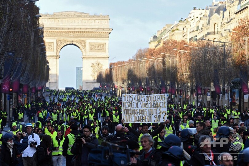 燃料価格高騰に対する抗議に端を発し、道路の封鎖から始まった「黄色いベスト」と呼ばれる運動は、その後マクロン大統領の政策とトップダウン式の統治に反発する大規模な抗議デモに拡大。