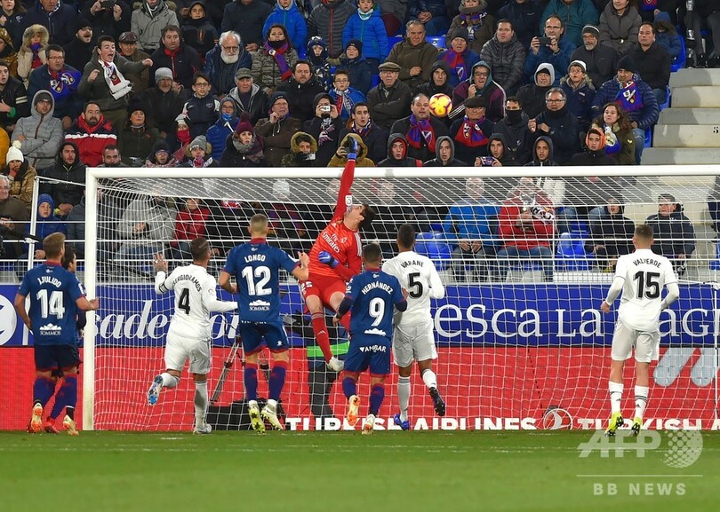 25分にレアルはベイルがペナルティーエリアの外からこの日2点目を狙ったが、今度はウエスカのGKアレクサンダル・ヨバノビッチ(Aleksandar Jovanovic)がボールをかき出した。