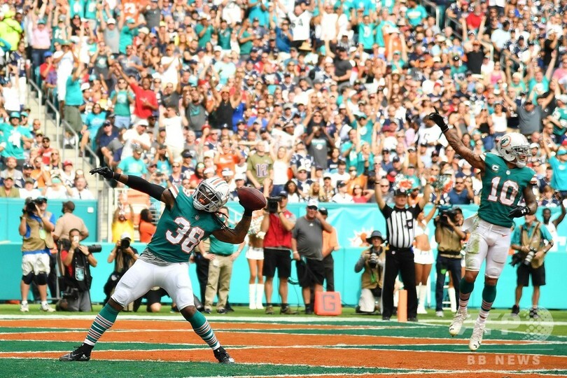 【12月10日 AFP】18NFLは9日、第14週の試合が行われ、大胆なラスト1プレーでタッチダウンを決めたマイアミ・ドルフィンズ(Miami Dolphins)が34-33でニューイングランド・ペイトリオッツ(New England Patriots)に競り勝ち、ペイトリオッツのプレーオフ進出決定はひとまずお預けとなった。