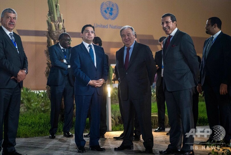 同協定は1年半にわたる協議の末、7月に国連でまとめられた。モロッコのマラケシュ(Marrakesh)で2日間にわたって開催される会合の冒頭で、約150か国の首脳や代表らが立ち会う中、正式に採択された。(c)AFP