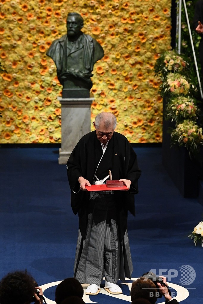 【12月11日 AFP】スウェーデンのストックホルムで10日、ノーベル医学生理学賞(Nobel Prize in Physiology or Medicine)の授賞式が行われ、がんの治療法に革命的な変化をもたらした功績で同賞に選ばれた京都大学(Kyoto University)の本庶佑(Tasuku Honjo)特別教授が和服姿で出席し、同国のカール16世グスタフ国王(King Carl XVI Gustaf)からメダルと賞状が授与された。