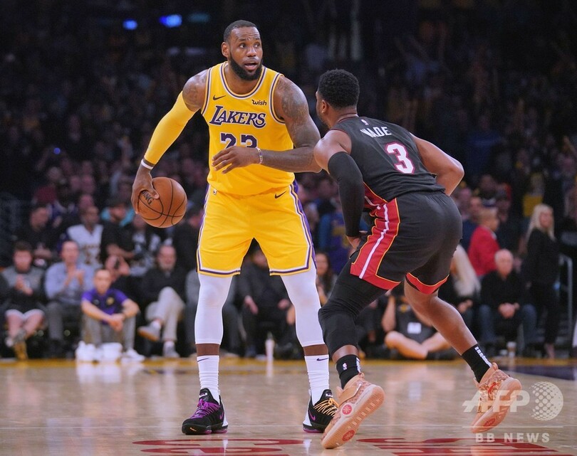 28得点をマークしたレイカーズのレブロン・ジェームズ(LeBron James)は、元チームメートで長年のライバルだったドウェイン・ウェイド(Dwyane Wade)との最後の直接対決を制した。