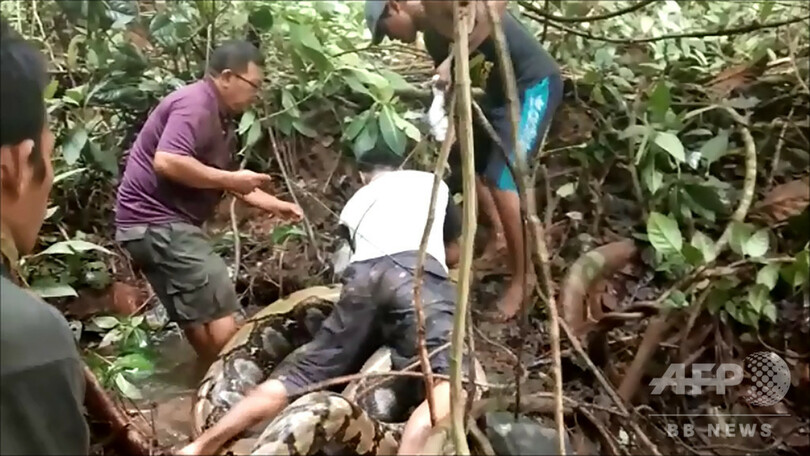 【12月11日 AFP】インドネシア・スマトラ(Sumatra)島の村で先月、住民らが全長8メートルの巨大なニシキヘビを、格闘の末に捕獲した。このヘビを捉えた映像は、ネット上に拡散して数百万回以上視聴されたという。