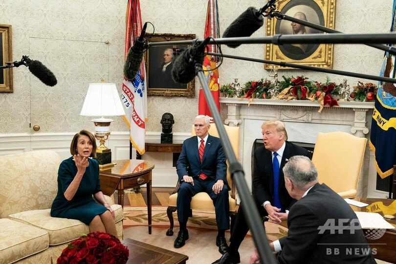 テレビで生中継された両氏との会談では、国境の壁の建設費用をめぐって激論になっていた。(c)AFP
