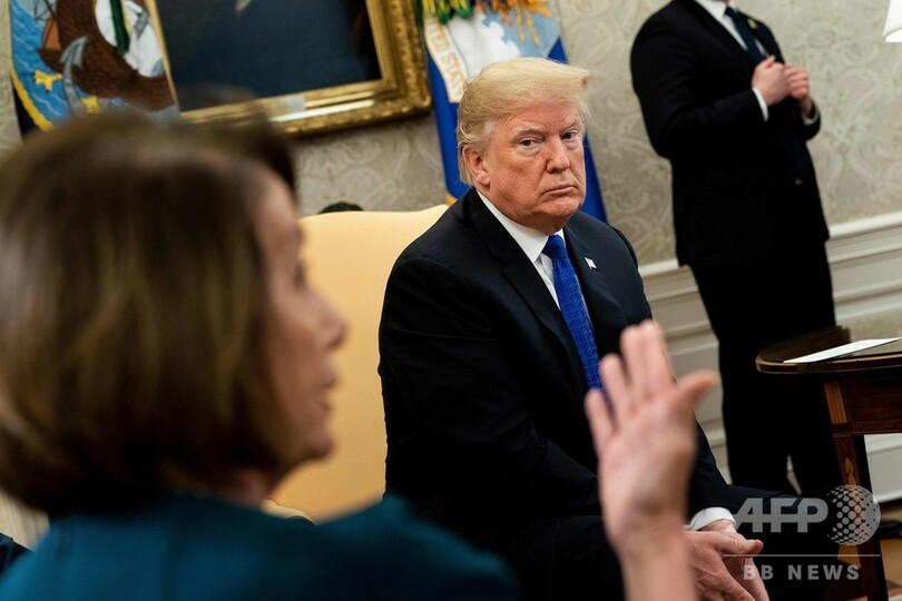 テレビで生中継された両氏との会談では、国境の壁の建設費用をめぐって激論になっていた。(c)AFP