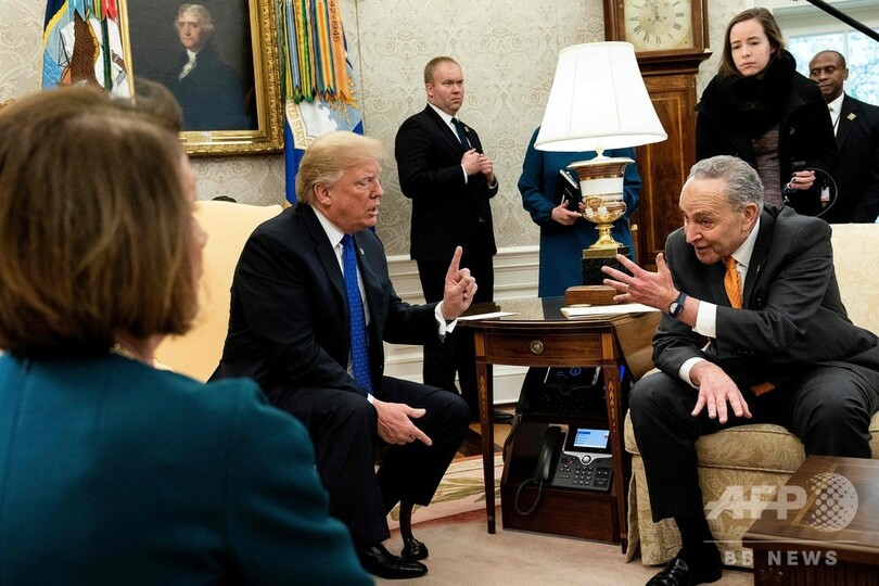 テレビで生中継された両氏との会談では、国境の壁の建設費用をめぐって激論になっていた。(c)AFP