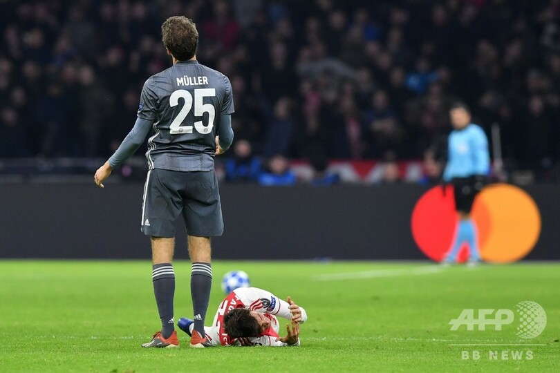 【12月14日 AFP】ドイツ・ブンデスリーガ1部のバイエルン・ミュンヘン(Bayern Munich)に所属するトーマス・ミュラー(Thomas Muller)は13日、前日に行われた欧州チャンピオンズリーグ(UEFA Champions League 2018-19)のアヤックス(Ajax)戦でニコラス・タグリアフィコ(Nicolas Tagliafico)の頭を蹴り、退場宣告を受けた自身のプレーについて謝罪した。