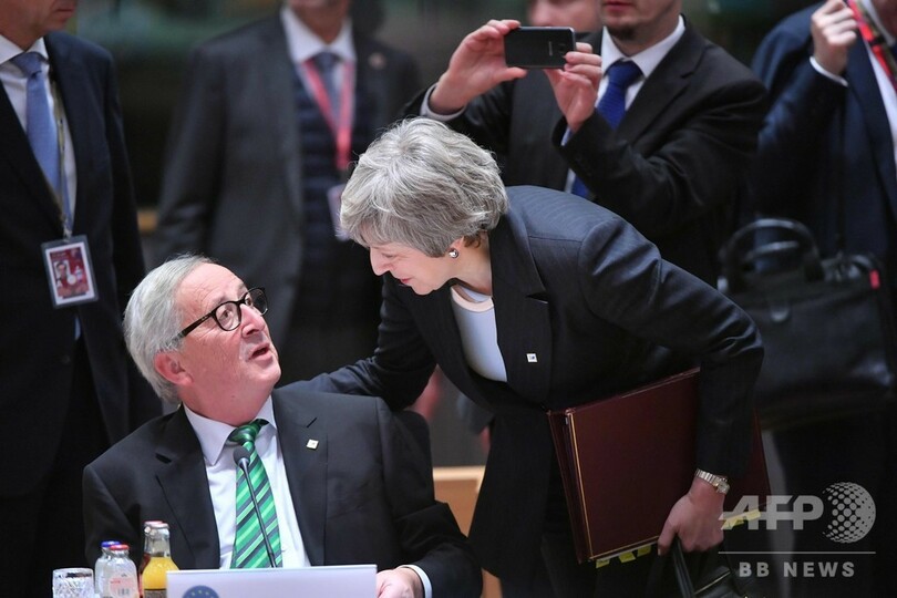 ユンケル委員長は、欧州側からの支援を望むならば今後数週間以内に提案を出すようメイ首相に伝えた。その一方でユンケル氏は、「合意なき離脱」に備えて欧州の企業と市民を保護するため、今月19日に従来よりも踏み込んだ計画を公表すると明らかにし、新たな取り決めがない限り英国は来年3月29日にEUを離脱すると述べた。(c)AFP/Alice Ritchie and Dave Clark