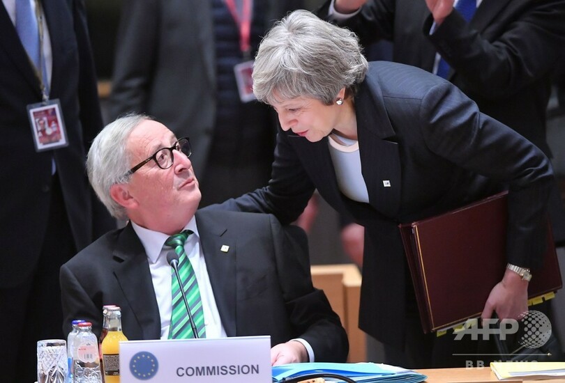 ユンケル委員長は、欧州側からの支援を望むならば今後数週間以内に提案を出すようメイ首相に伝えた。その一方でユンケル氏は、「合意なき離脱」に備えて欧州の企業と市民を保護するため、今月19日に従来よりも踏み込んだ計画を公表すると明らかにし、新たな取り決めがない限り英国は来年3月29日にEUを離脱すると述べた。(c)AFP/Alice Ritchie and Dave Clark