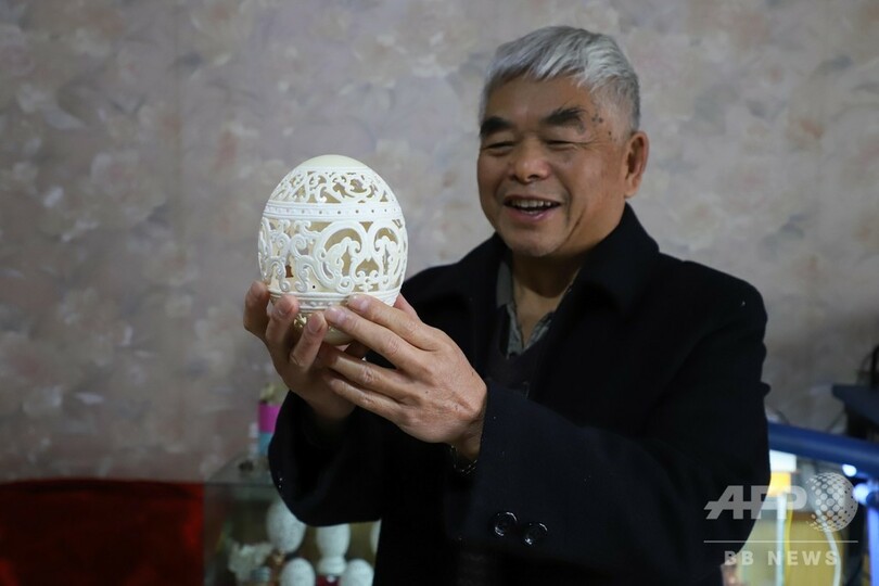 卵の殻も段さんの手にかかれば、美しい芸術作品へと変貌する。段さんは14年間で1000点近い「卵彫刻」作品を作り上げている。(c)CNS/JCM/AFPBB News