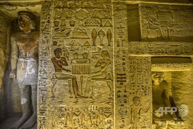 エジプト考古省によると、この墓は、エジプト第5王朝のネフェリルカラー王(King Neferirkare)に仕えた「ワフティー(Wahtye)」という高位聖職者のもの。墓はワフティーと母、妻ら家族の壁画で飾られていたほか、ワフティーと家族の色鮮やかな像24体が、12以上の壁のくぼみに収められていた。