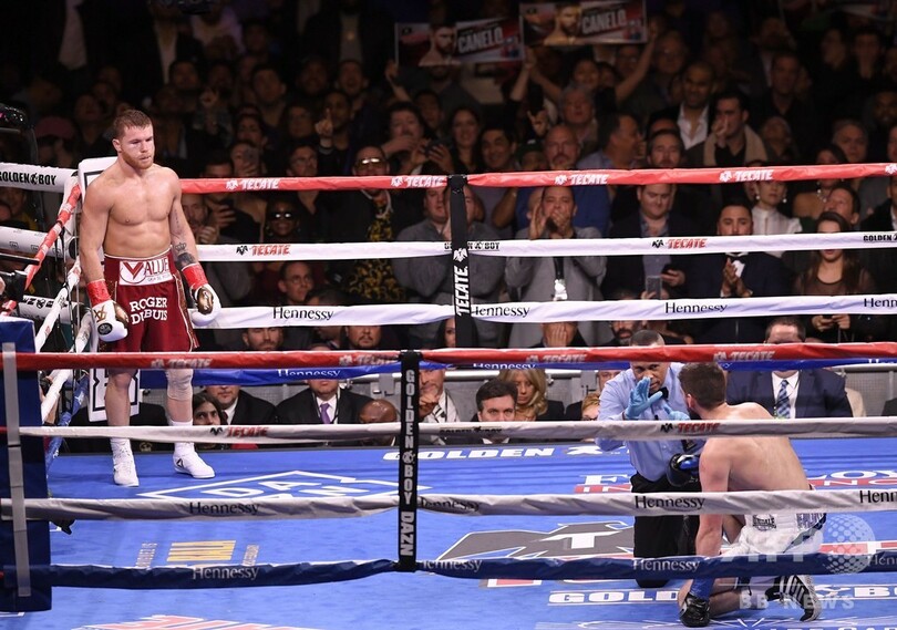 9月にゲンナディ・ゴロフキン(Gennady Golovkin、カザフスタン)との激闘を制し、WBCとWBAのミドル級タイトルを獲得したアルバレスは、自身初となるニューヨークでのファイトで階級を上げた影響を感じさせず、フィールディングを危なげなく下した。