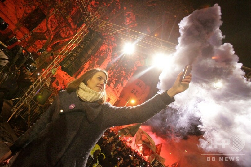 16日のデモは議会前の広場で解散したが、一部の参加者が野党議員2人に率いられてハンガリー公共放送局前まで行進。陳情書を読み上げようとしたが阻まれたため発煙筒などを投げ、警察が催涙ガスで応じる事態に発展した。(c)AFP