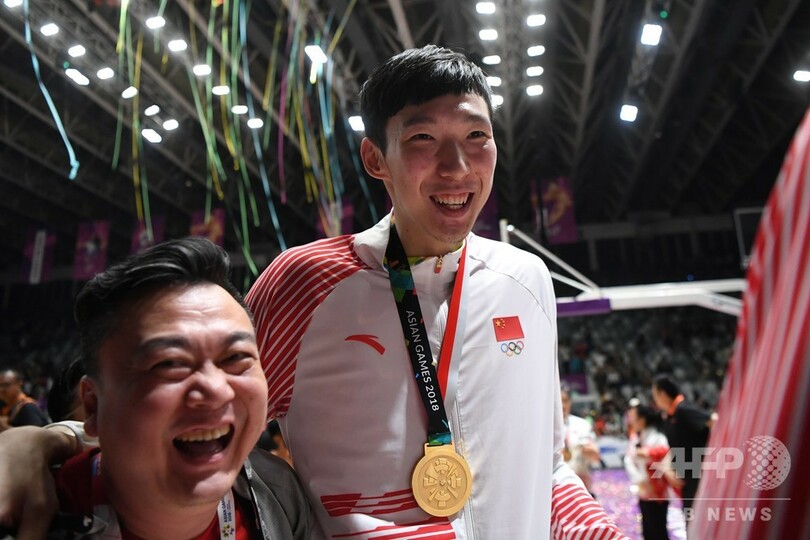 中国プロバスケットボールリーグ(CBA)の新疆フライングタイガース(Xinjiang Flying Tigers)で3シーズンを過ごし、2017年にチームのリーグ優勝に貢献した周は、同国代表として2016年のリオデジャネイロ五輪に出場したほか、今年9月にインドネシア・ジャカルタで開催されたアジア大会(18th Asian Games)では金メダルを獲得した。(c)AFP