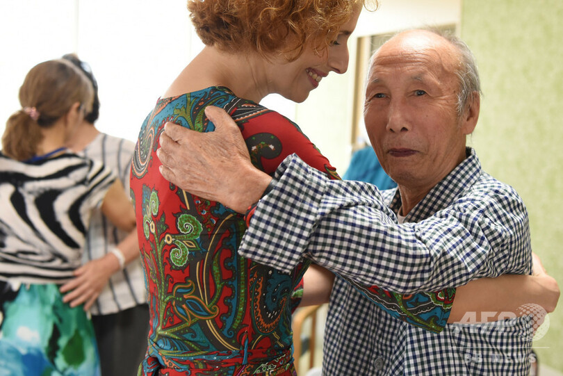 東京・足立区の水野記念病院で毎月催されているタンゴセラピーでは、日本タンゴセラピー協会(Tango Therapy Association Japan)のインストラクターやボランティアたちが、約50人の患者と一人ずつ時間をかけて抱擁を交わしていく。
