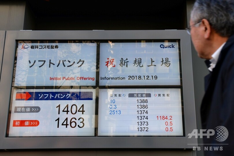 【12月19日 AFP】ソフトバンクグループ(SoftBank Group)の子会社で国内携帯電話大手のソフトバンク(SoftBank)が19日、東京証券取引所(Tokyo Stock Exchange)第1部に上場した。初値は1463円と売り出し価格の1500円を下回った。