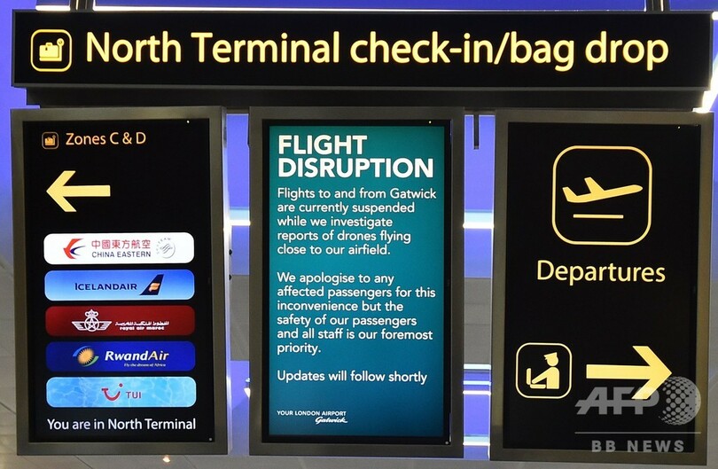 【12月21日 AFP】英首都ロンドンのガトウィック(Gatwick)空港で19日から20日にかけ、複数のドローン(小型無人機)が敷地上空に侵入したことから全航空便の離着陸が停止され、クリスマスを数日後に控える中で数万人の乗客が足止めを余儀なくされている。英当局は警察に加え軍隊も投入して操縦者の捜索を急いでいる。
