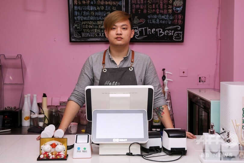 中国では、特に犬や猫を飼う余裕のない若者の間でペットカフェの人気が年々高まってきている。(c)AFP