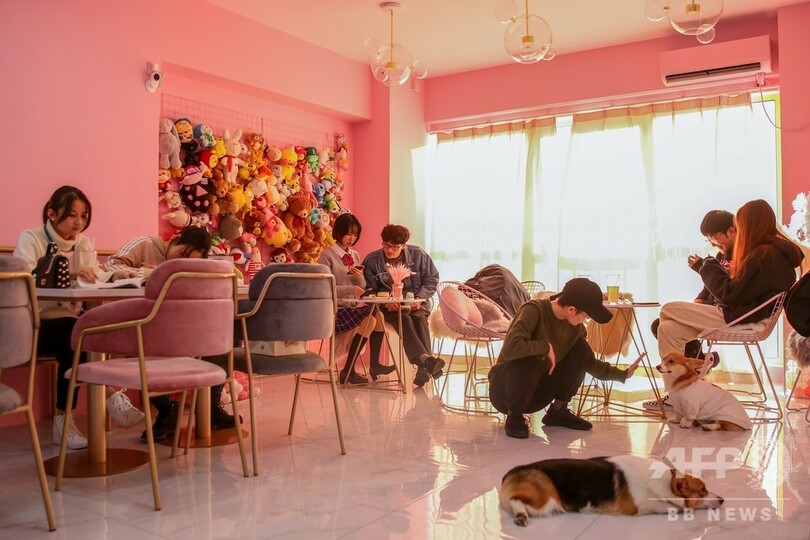 【12月22日 AFP】中国・上海にあるピンクを基調としたカフェの店内で、コーギーたちが短い足でとことこ歩き回っている。訪れた客たちが味わっているスイーツも、コーギーのお尻の形をイメージしたものばかりだ。
