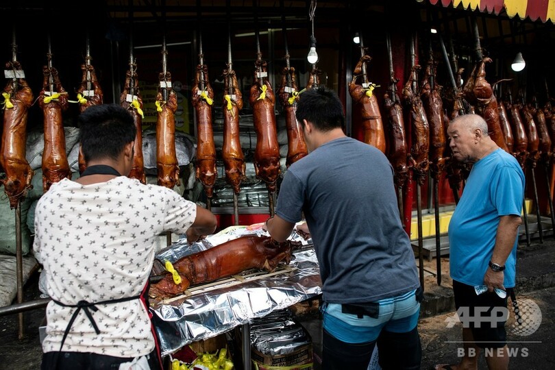 【12月22日 AFP】竹で串刺しにされた子豚がオレンジ色の炎の上にずらりと並べられ、ジュージューと音を立てている――クリスマスを数日後に控えたフィリピンの首都マニラでは、名物料理の「レチョン(lechon)」作りがピークを迎えている。