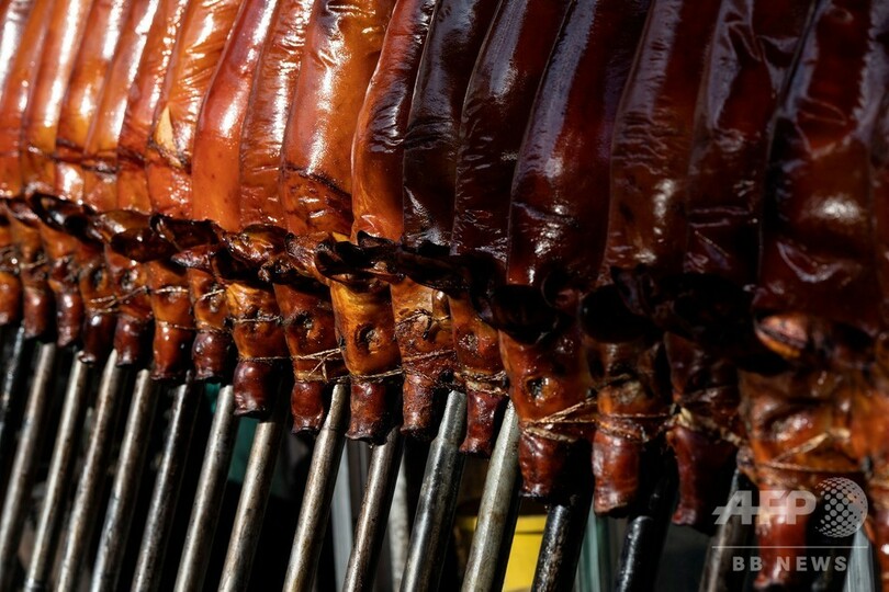【12月22日 AFP】竹で串刺しにされた子豚がオレンジ色の炎の上にずらりと並べられ、ジュージューと音を立てている――クリスマスを数日後に控えたフィリピンの首都マニラでは、名物料理の「レチョン(lechon)」作りがピークを迎えている。