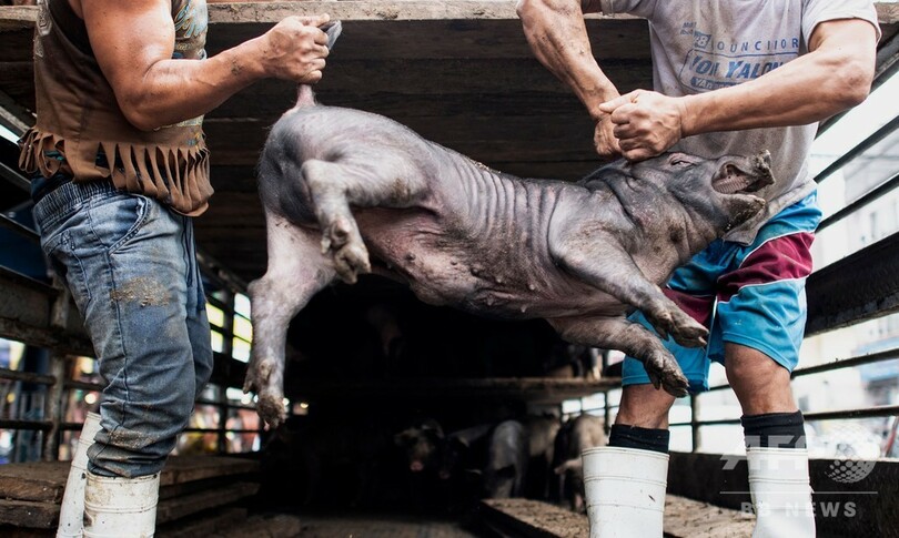 【12月22日 AFP】竹で串刺しにされた子豚がオレンジ色の炎の上にずらりと並べられ、ジュージューと音を立てている――クリスマスを数日後に控えたフィリピンの首都マニラでは、名物料理の「レチョン(lechon)」作りがピークを迎えている。