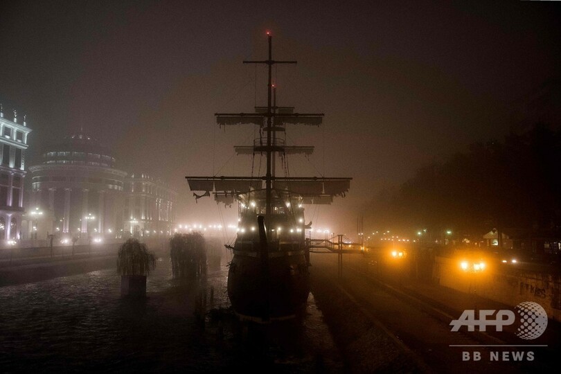 【12月24日 AFP】マケドニアの首都スコピエは、濃霧に加えてスモッグにより、街並みがかすむほど視界が悪くなっている。