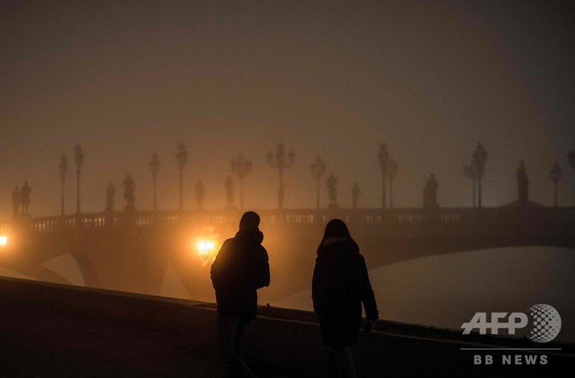 【12月24日 AFP】マケドニアの首都スコピエは、濃霧に加えてスモッグにより、街並みがかすむほど視界が悪くなっている。