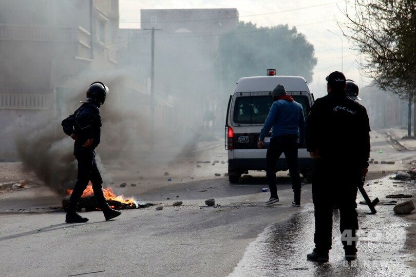 【12月26日 AFP】チュニジア内務省は25日、西部の都市カスリーヌ(Kasserine)でジャーナリストが生活難に抗議して焼身自殺したことを受けて発生したデモ隊と警官隊の衝突で、警察官6人が負傷、デモに参加した9人が拘束されたと発表した。